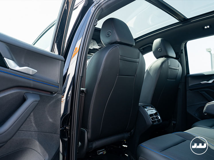 به لطف فاصله محوری ۲۷۹۱ میلیمتری، فضای پای ردیف عقب به میزان قابل توجهی افزایش یافته است. متریال داخلی شامل چرم با دوخت ظریف، پلاستیکهای نرم و تریمهای تزئینی با کیفیت است که دوام و حس لوکس بودن را تأمین میکند.
